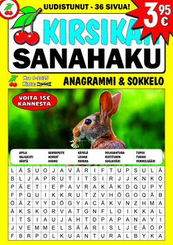 Kiehtovia ja rentouttavia sanahakuja. Ratkottavaa lehdestä löytyy laidasta laitaan. Pääpaino on kuitenkin tutuissa perus sanahakutehtävissä, mutta mukaan on myös otettu muutama vihjesanahakutehtävä, anagammi ja sokkelo.