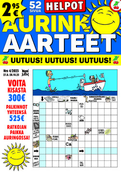 Tässä on Suomen aurinkoisin ristikkolehti. Lehti tarjoaa tuhdin paketin helppoja ja helpohkoja tehtäviä aurinkoisten "vitsien" kera.