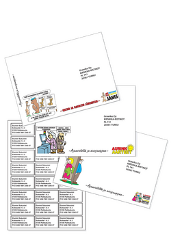 Osoitteellisia C4 kirjekuoria 24kpl + tarranimilappuja 96 kpl
