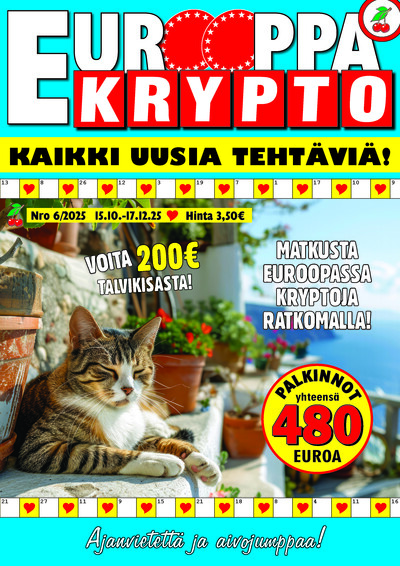 Nojatuolimatkalle Eurooppaan! Nyt Eurooppa tutuksi kryptoja ratkomalla. Kaikki tehtävät palkintotehtäviä.